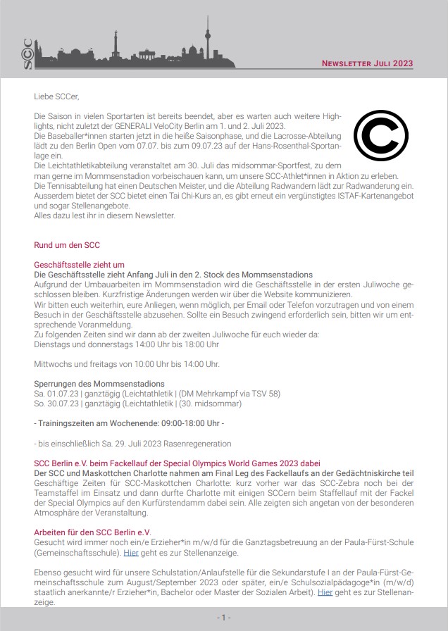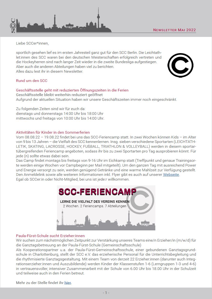 Weitere Informationen und was im Sommer sonst im SCC los ist, findet ihr in diesem Newsletter.
