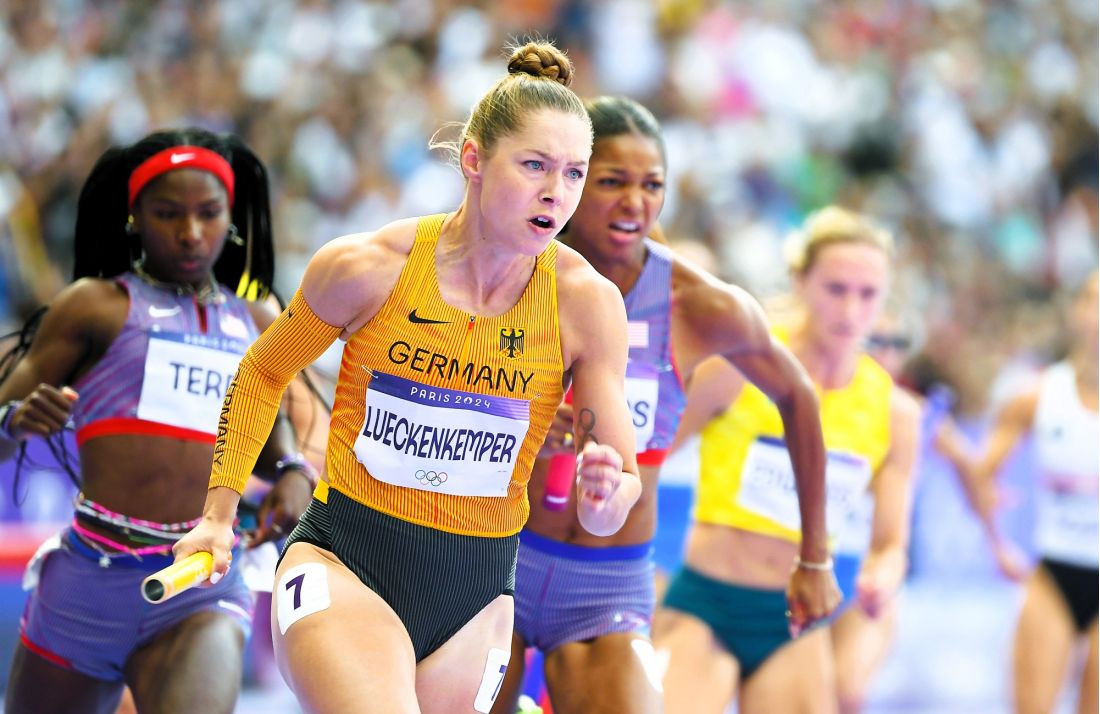 Schon im Vorlauf der 4x100m-Staffel hatte es sich angedeutet. Mit einem zweiten Platz im Vorlauf hinter der US-Staffel qualifizierte sich die DLV-Staffel mit Sophia Junk, Lisa Mayer, SCCerin Gina Lückenkemper und Rebekka Haase direkt für das Olympiafinale. Die Wechsel waren noch nicht perfekt, dennoch liefen sie mit 42,15s eine schnellere Zeit als bei ihrem EM-Titel von 2022 und nah an die Zeiten der drei schnelleren Staffeln. Zum Finale wusste die Staffel (am Start Alex Burghardt statt Sophia Junk) dass eine Medaille drin ist. Der erste Wechsel ließ die Zuschauer ruhig werden, da Lisa Mayer erst recht spät in der Hand hatte und nicht sofort erkennbar war, ob die Übergabe noch im Wechselraum erfolgte. Als Lisa Mayer dann aber den Stab an Gina übergab, zeigte die SCCerin was die ganze Zeit in Ihren Beinen steckte und übergibt in Führung liegend an Rebekka Haase. Sie konnte zwar den schnellen Sprinterinnen aus USA und Großbritannien Stand halten, aber führte die DLV-Staffel zur hervorragenden Bronzemedaille mit einer erneuten Steigerung auf 41,97s – die schnellste Zeit seit der Wiedervereinigung! Kurz später war auch klar, dass der erste Wechsel sauber war und die Freude war grenzenlos!