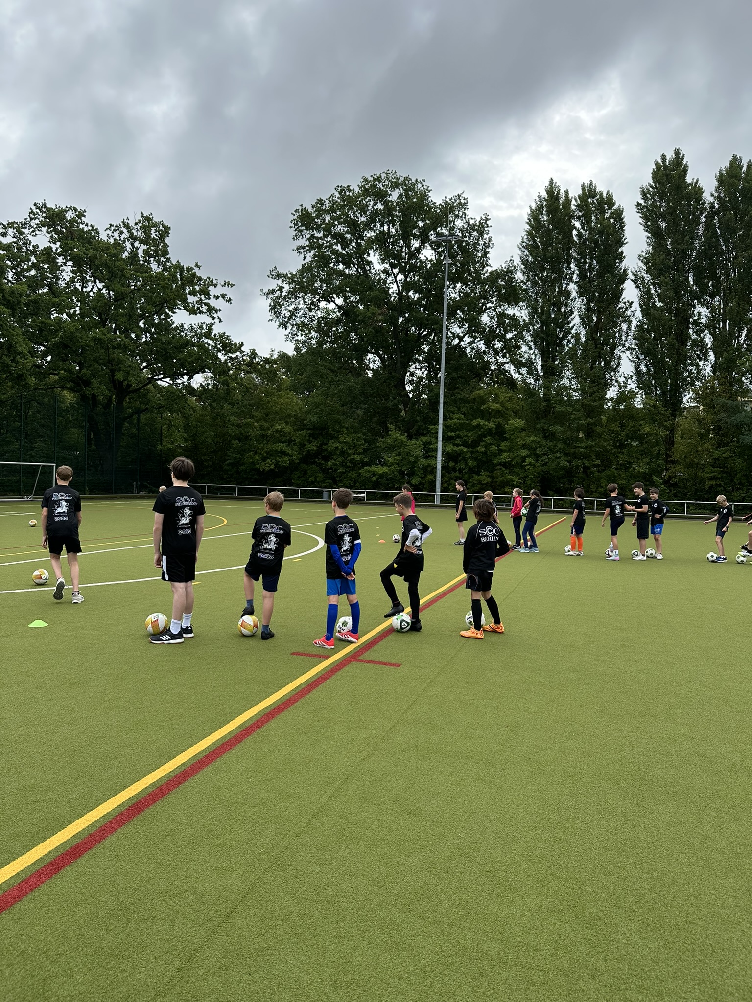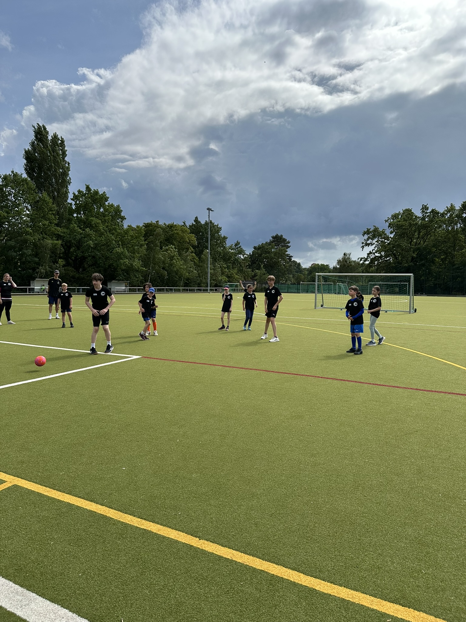 Der Montag startete direkt spannend mit zwei Ballsportarten. Fußball machte den Anfang. Gemeinsam wurde gepasst, gedribbelt und geschossen. Wer wollte, konnte zudem ein kleines Torwarttraining absolvieren. Ein gemeinsames Abschlussspiel durfte am Ende natürlich auch nicht fehlen.