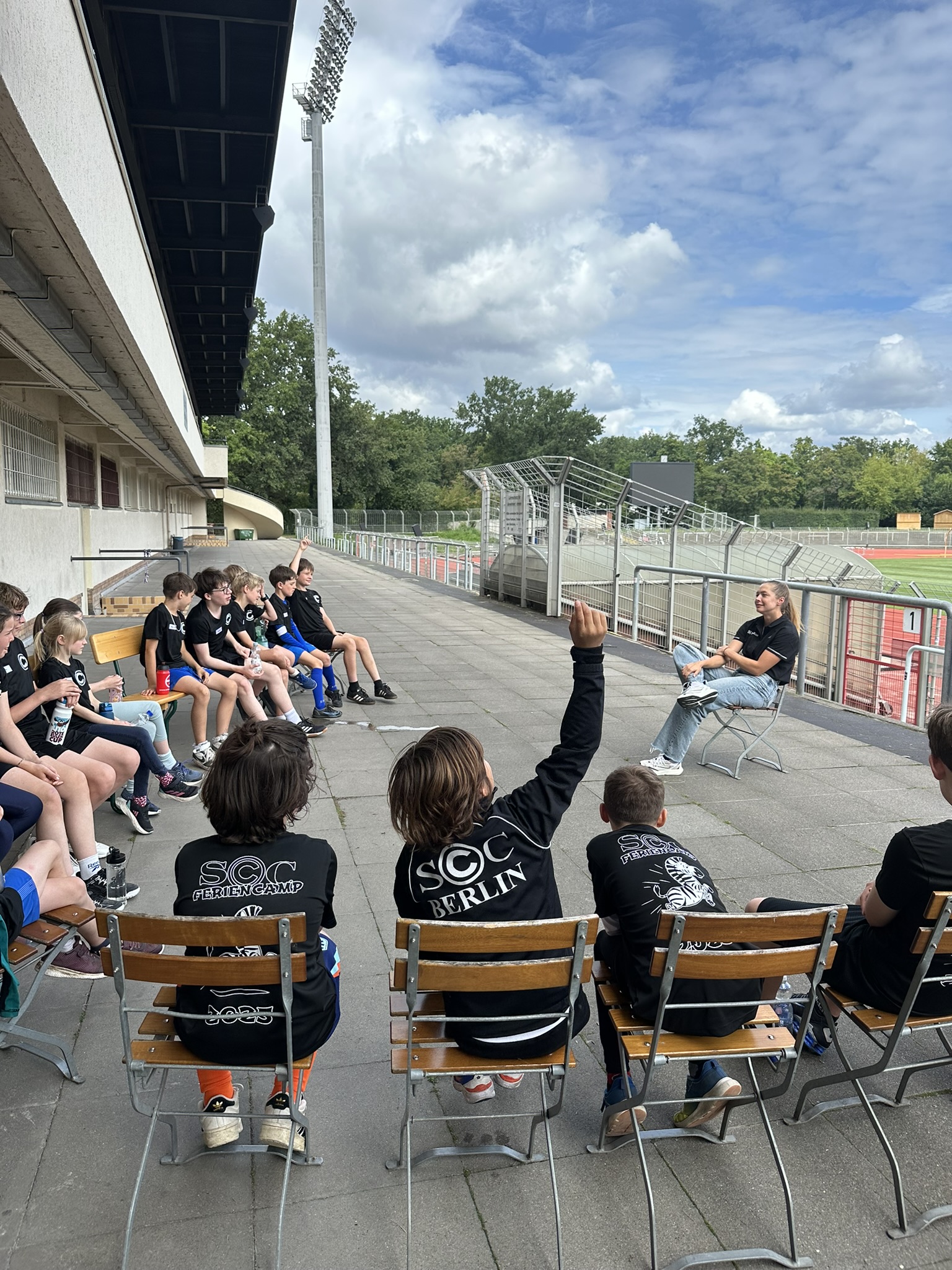 Nach dem Mittagessen bekamen die Kids Besuch von Olympia-Bronzemedaillengewinnerin Gina Lückenkemper. Sie erzählte aus ihrer Karriere, von Wettkämpfen und beantwortet viele Fragen. Autogramme und Fotos gab es auch.