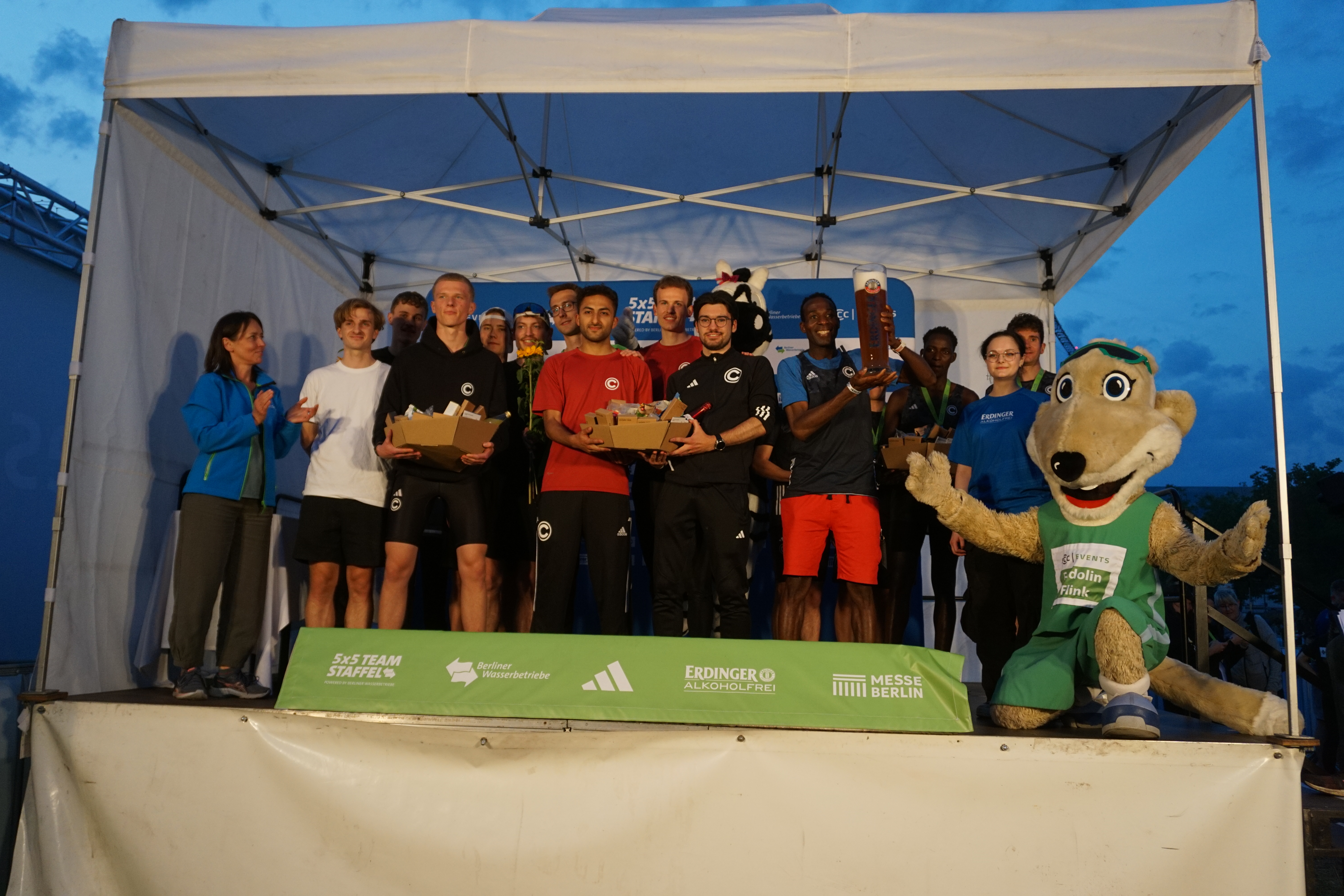 Am Start des Laufes schickten SCC-Präsident Andreas Statzkowski und Vizepräsidentin Katja Rösner die Startläufer aller Staffeln auf die Strecke, mithilfe von SCC-Maskottchen und Fridolin Flink von den SCC Events. Einmal mehr war in der Herrenwertung nicht an den SCC-Staffeln vorbeizukommen, bei den Frauen waren zwei SCC-Staffeln in den Top 3 vertreten, aufs Podium dazwischengeschoben hatte sich die Auswahl der Polizei Berlin.