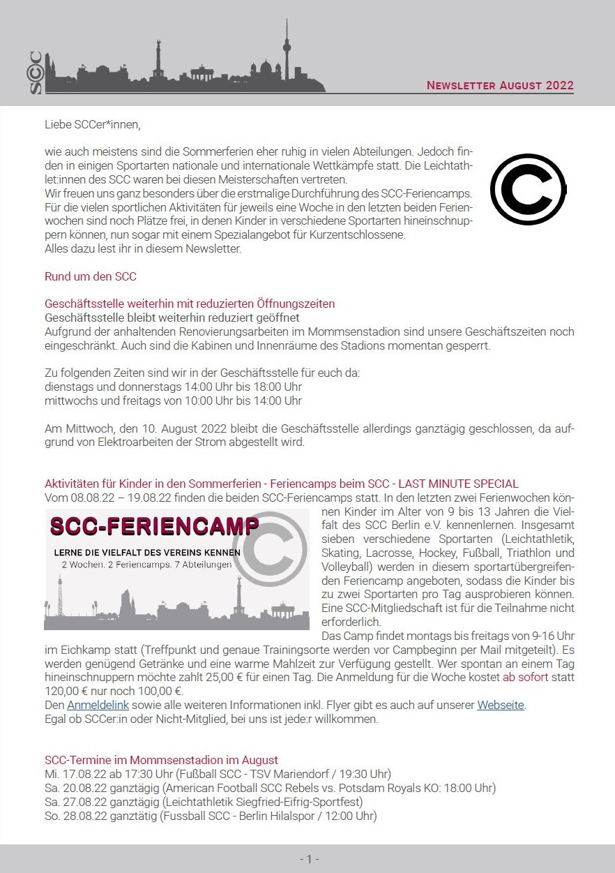 Weitere Informationen und was im Sommer sonst im SCC los ist, findet ihr in diesem Newsletter.