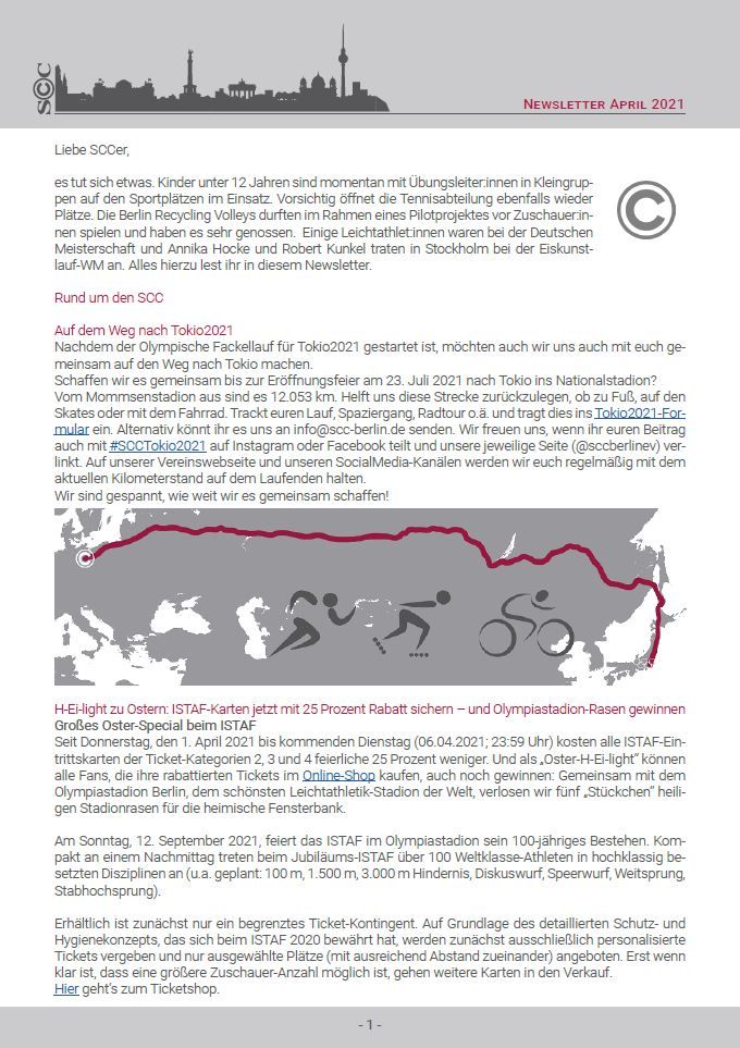 die Freiluftsaison steht für die meisten Sportarten vor der Tür. Am Sonntag beginnt diese für die Läufer direkt mit einem Highlight, dem GENERALI Berliner Halbmarathon mit über 38.000 Teilnehmern. Die Tennisabteilung hat mit Nicolas Kiefer einen prominenten Neuzugang zu verzeichnen, der die Abteilung im Bereich Training unterstützen wird. Die Berlin Recycling Volleys sind in die Play-Off-Viertelfinals gestartet, benötigen aber an diesem Sonntag noch dringend Unterstützung der SCC-Mitglieder für das Weiterkommen in den Play-Offs gegen Düren.