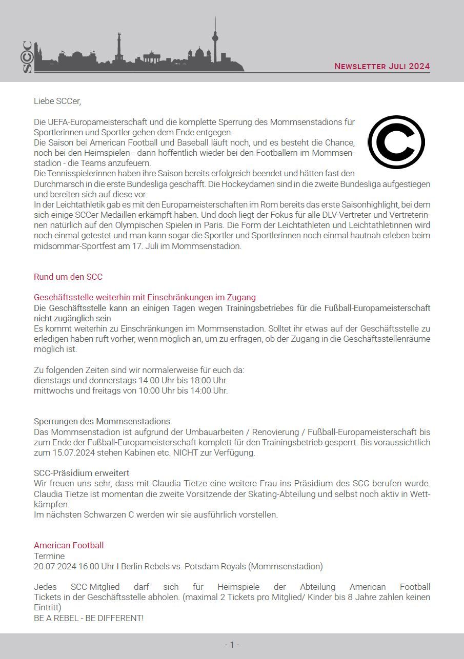 Der Newsletter des Sport-Club Charlottenburg erschien Oktober 2014 bis November 2024 monatlich als Ergänzung zum Vereinsmagazin - Das Schwarze C. In den vier Monaten, in denen das Schwarze C veröffentlicht wurde, war der Newsletter darin integriert. Somit erschien dieser achtmal jährlich und wurde allen Mitgliedern per E-Mail zugesandt.
